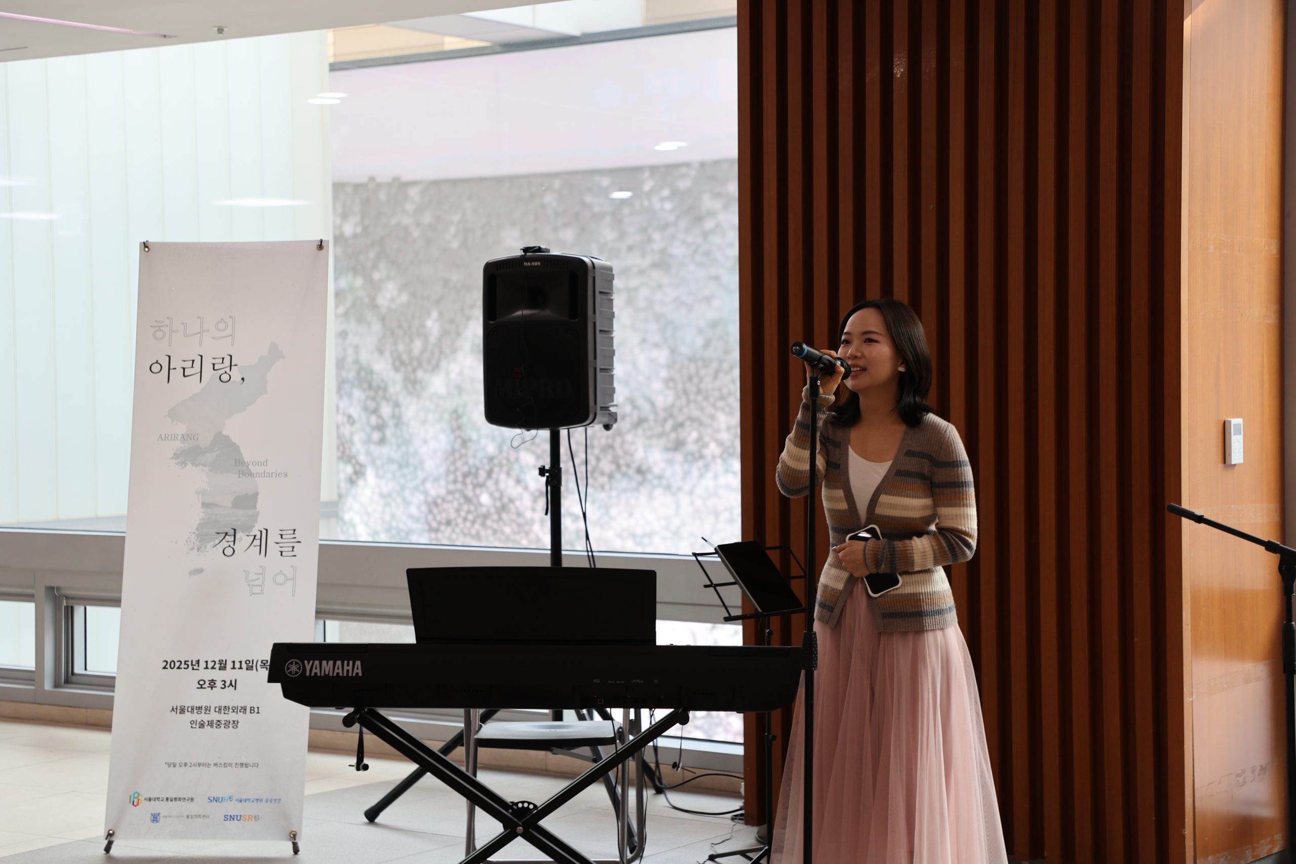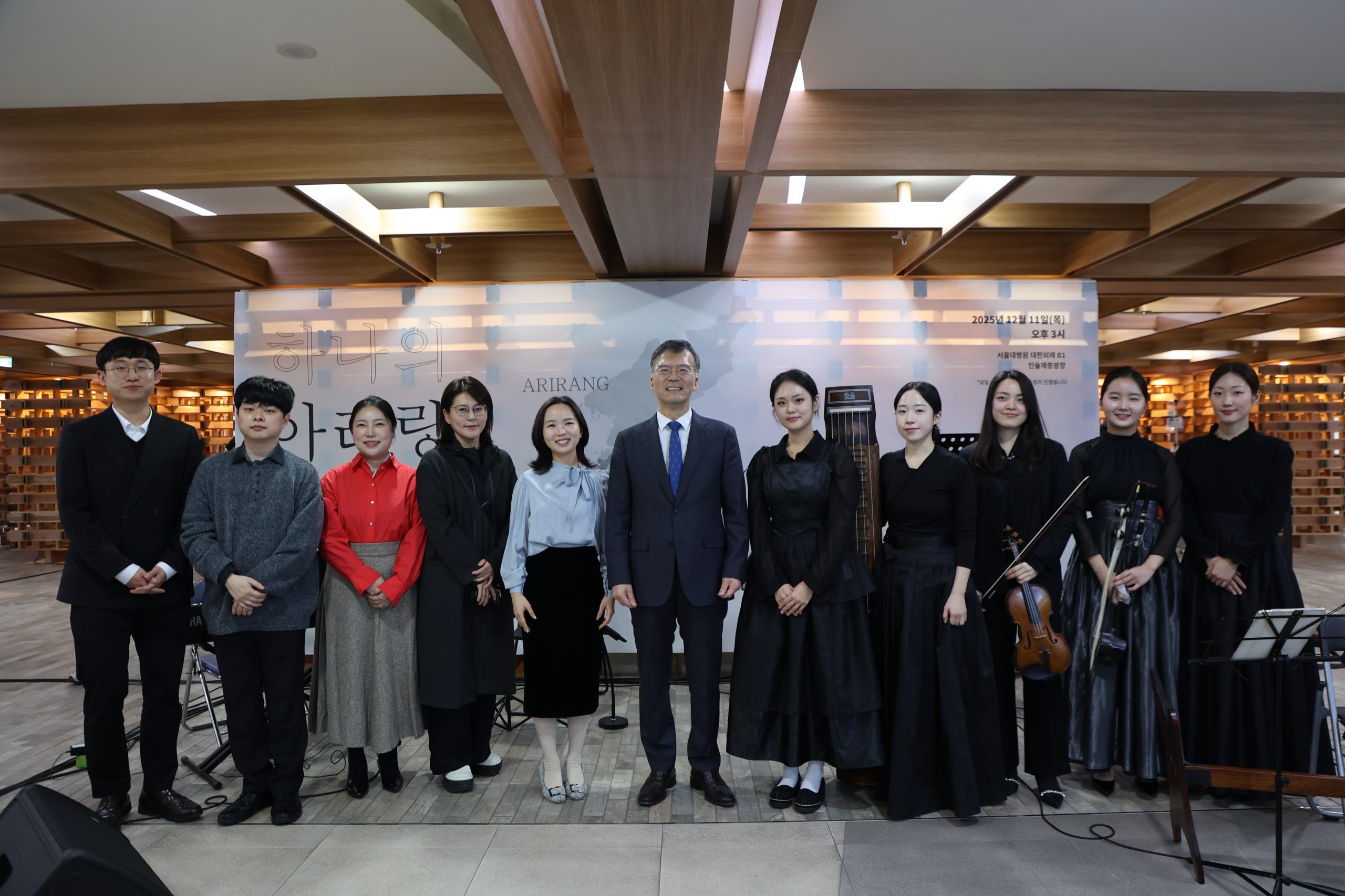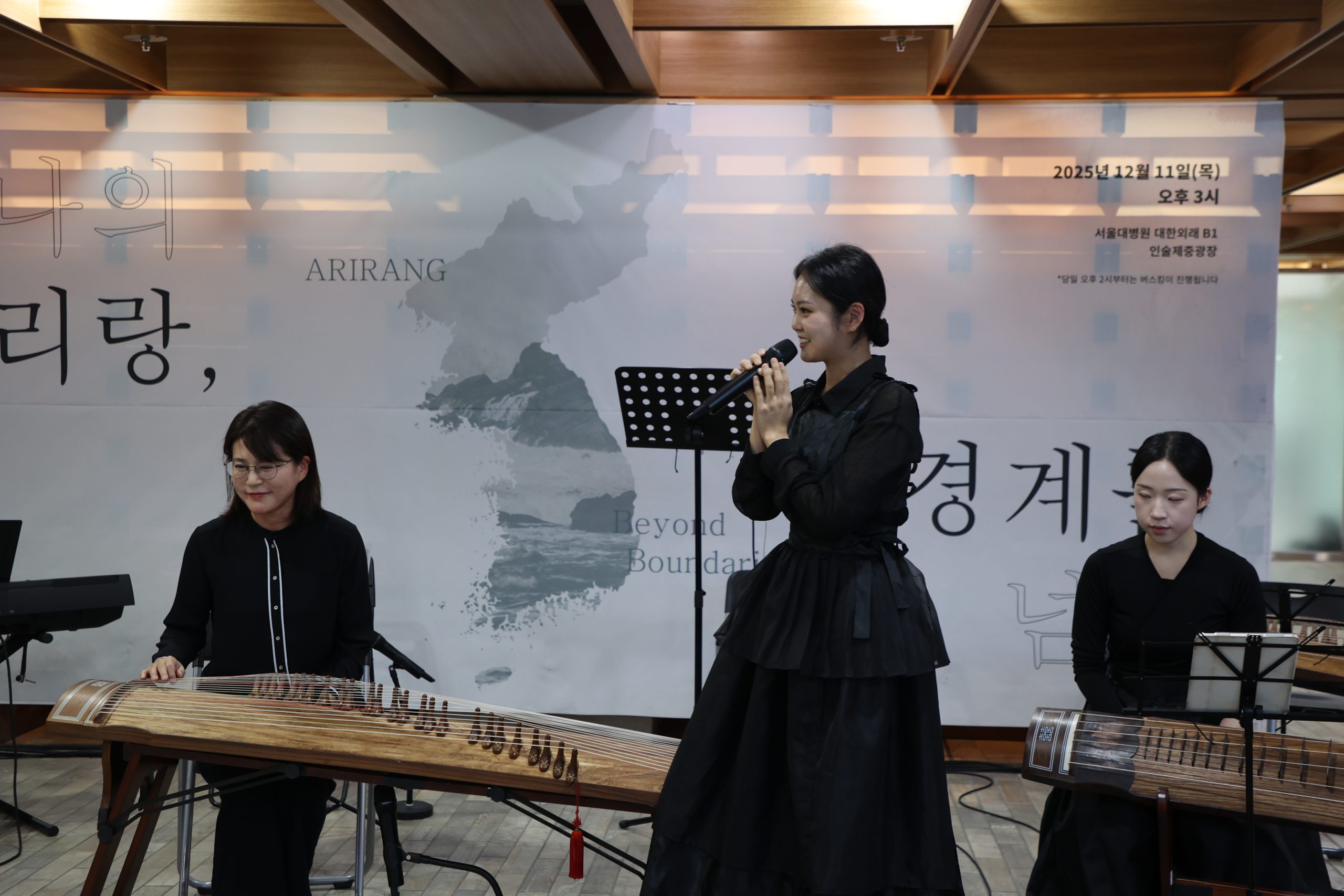 서울대학교 통일평화연구원에서는 서울대학교병원 공공부문, 서울의대 통일의학센터, 서울대학교 글로벌사회공헌단과 공동으로 ‘남북 문화교류 서로 잇기’ 문화행사를 개최하였습니다. 1부에서는 서울대 국악과 재학생 및 졸업생들의 버스킹 공연으로 서막을 열었고, 2부 메인 공연에서는 ‘아리랑’을 주제로 박순아 가야금 연주가 및 서울대 국악과 학생들의 협연으로 통일을 노래하는 특별무대를 진행하였습니다.