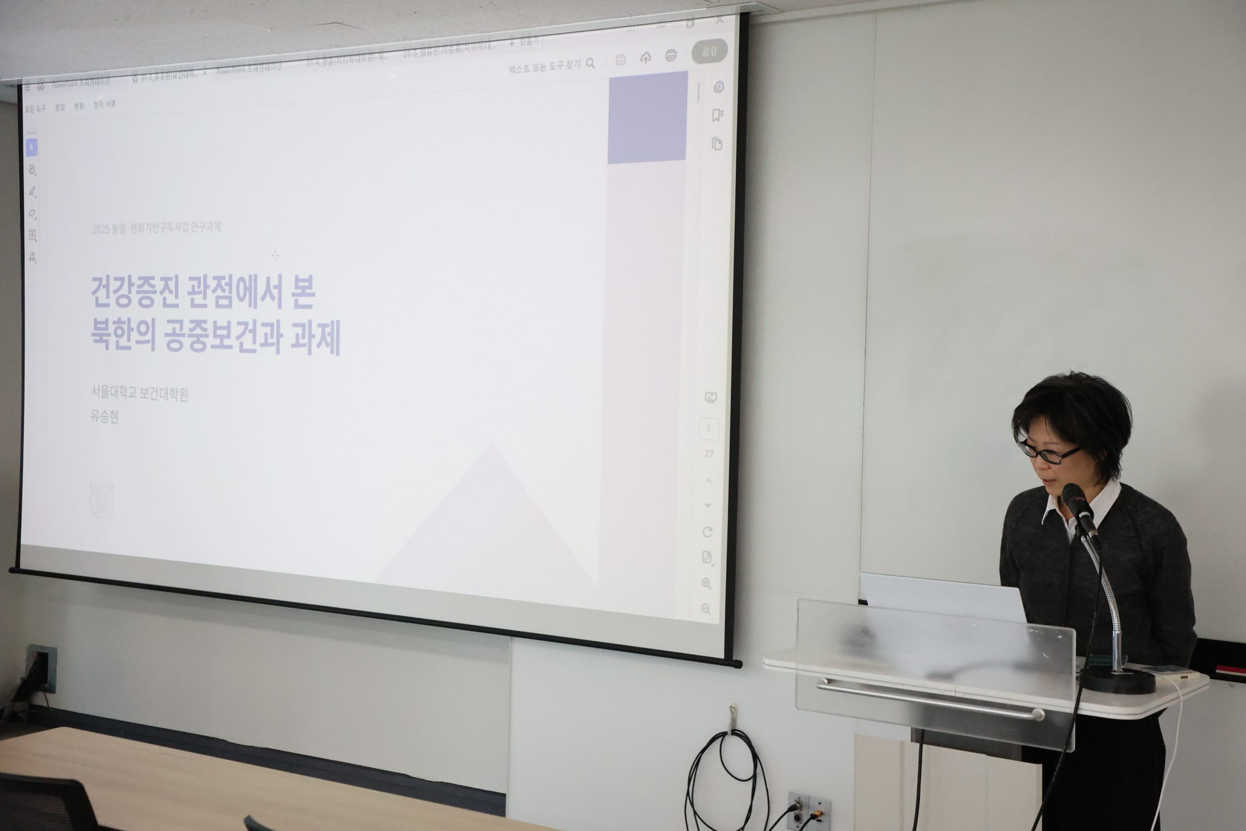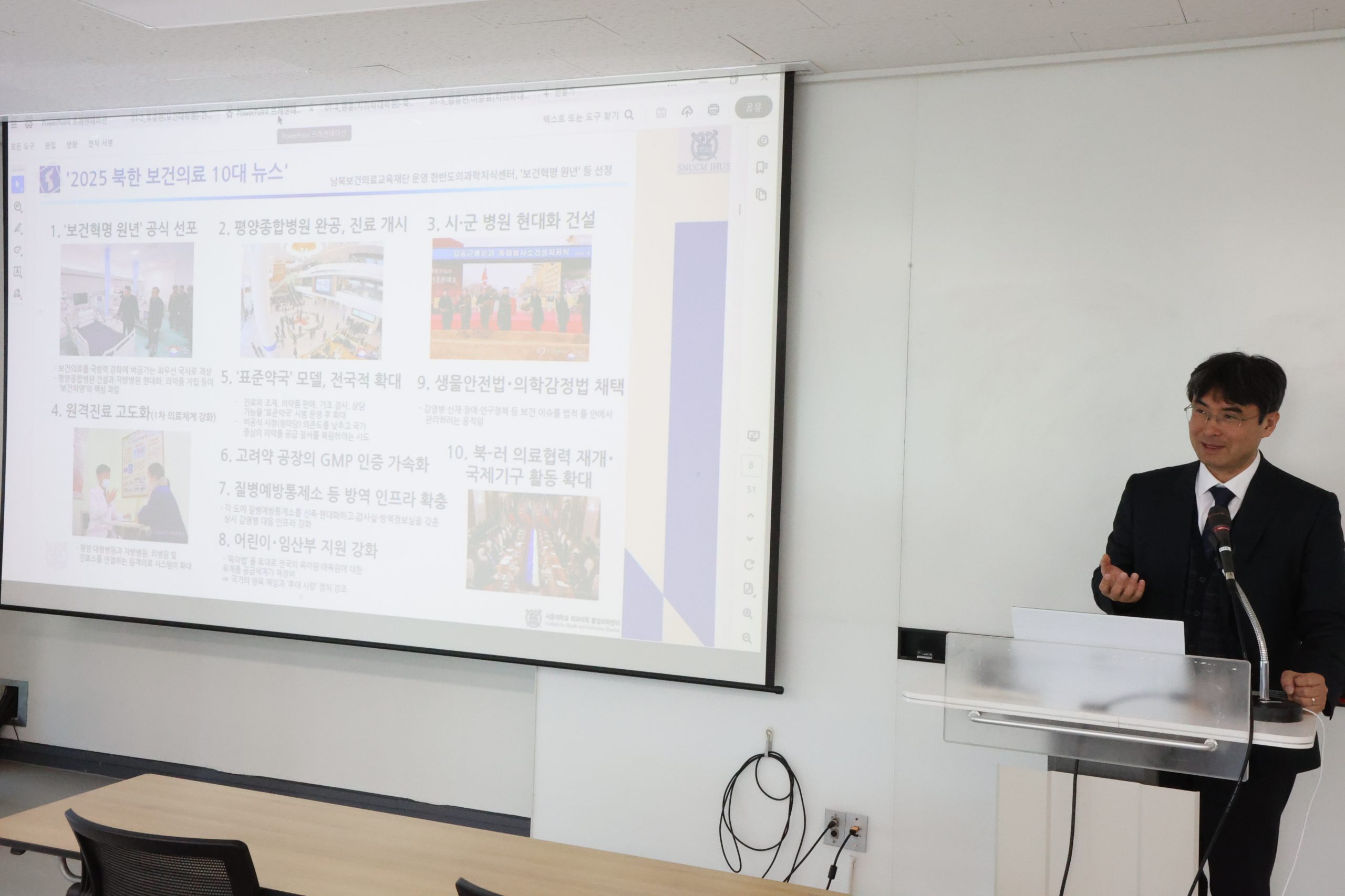 ○ 박상민 교수 사업팀에서는 “북한 보건의료 최신 현황과 데이터 분석을 통한 통일의료 교과서 개정 기반 수립” 연구의 결과를 발표한다. 이번 발표는 남북한 의료체계의 구조적 차이와 협력 재개의 필요성이 커지는 시점에서 최신 북한 보건의료 시스템과 정책 변화를 분석하고, 국제기구 자료와 데이터를 토대로 남북한 보건의료 격차와 협력 과제를 도출하며, 통일의료 교과서 개정, 전문가 네트워크 구축, 통합 대비 교육콘텐츠 개발 등의 연구성과를 공유한다.