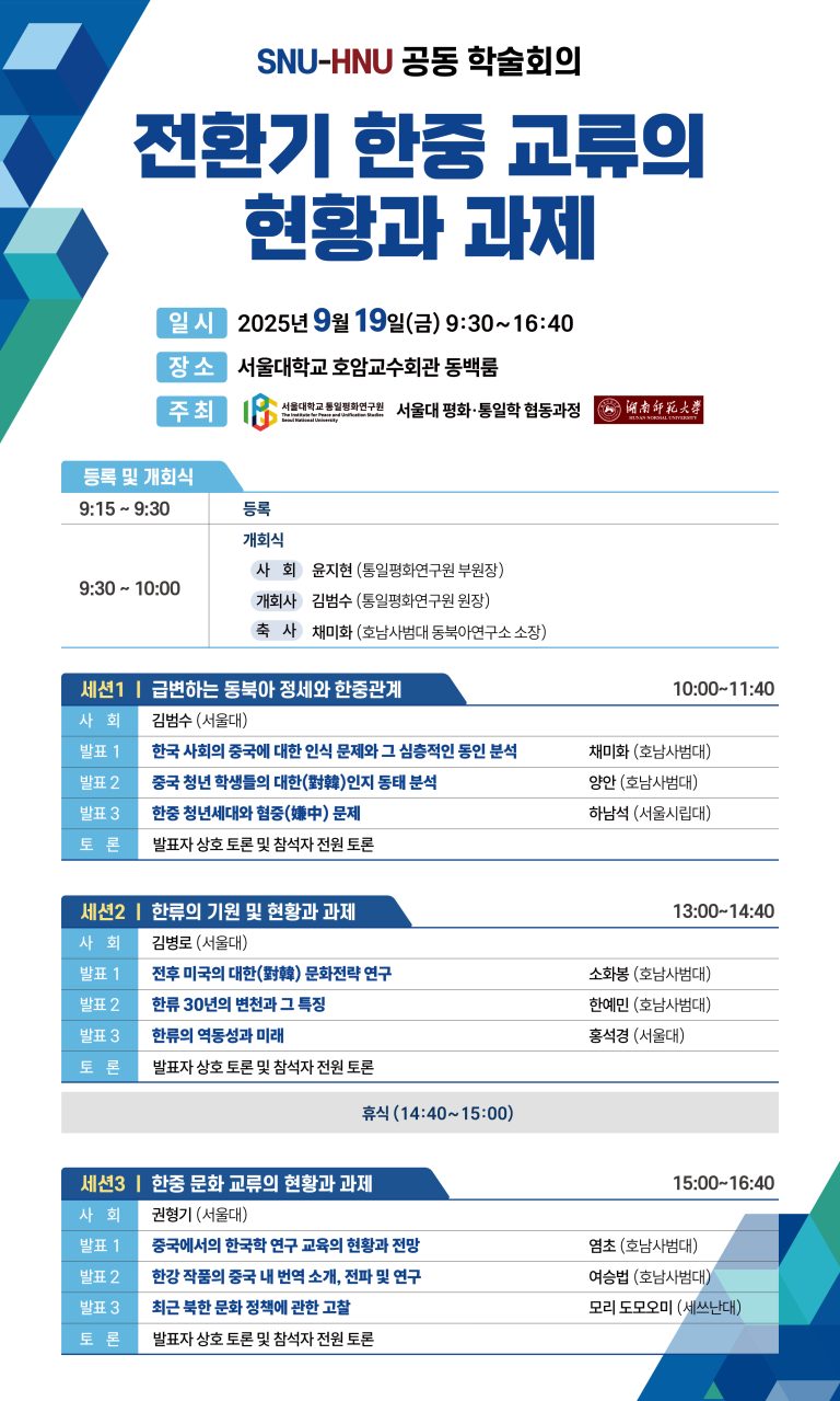[행사 내용] Title: Korea Europe Peace Platform Berlin Forum 2024 Dates: July 10th ~ 12th, 2024 Venue: Seminaris CampusHotel Berlin, Weiterbildungszentrum der Freien University Berlin Organized by the Institute for Peace and Unification Studies(IPUS) at Seoul National University, Korean Studies of Free University of Berlin, Gyeonggi-do Province, KDI School [웹포스터] [행사사진] 서울대학교 통일평화연구원은 경기도, 베를린자유대와 공동으로 2024년 7월 10(수)~12일(금) 독일 베를린자유대에서 2024 한·유럽 평화포럼을 개최하였다. 이번 학술회의는 베를린자유대학교의 이은정 교수를 비롯해 하영선 동아시아연구원(EAI) 이사장, 오거스트 프라데토(August Pardetto) 헬무트슈미트대학교 교수, 프랭크 엄(Frank Aum) 미국 평화연구소 선임 연구원 등 30여 명의 전문가가 참여했다. 발표 및 패널토론에서는 ‘신냉전 시기 중견국의 역할’, ‘남북관계, 북미관계의 전망과 유럽의 역할’, ‘유럽의 지역안보공동체 구축 경험과 한반도 평화’, ‘지속가능한 생태 평화의 넥서스-“무기없는 평화”를 위한 동베를린 지식인들의 선언’ 등의 주제가 다뤄졌다. 김범수 서울대학교 통일평화연구원 원장은 “러시아-우크라이나 전쟁 이후 국제정세와 안보 환경이 급변하고 있는 상황에서 한국과 유럽은 중견국으로서 전략적⋯