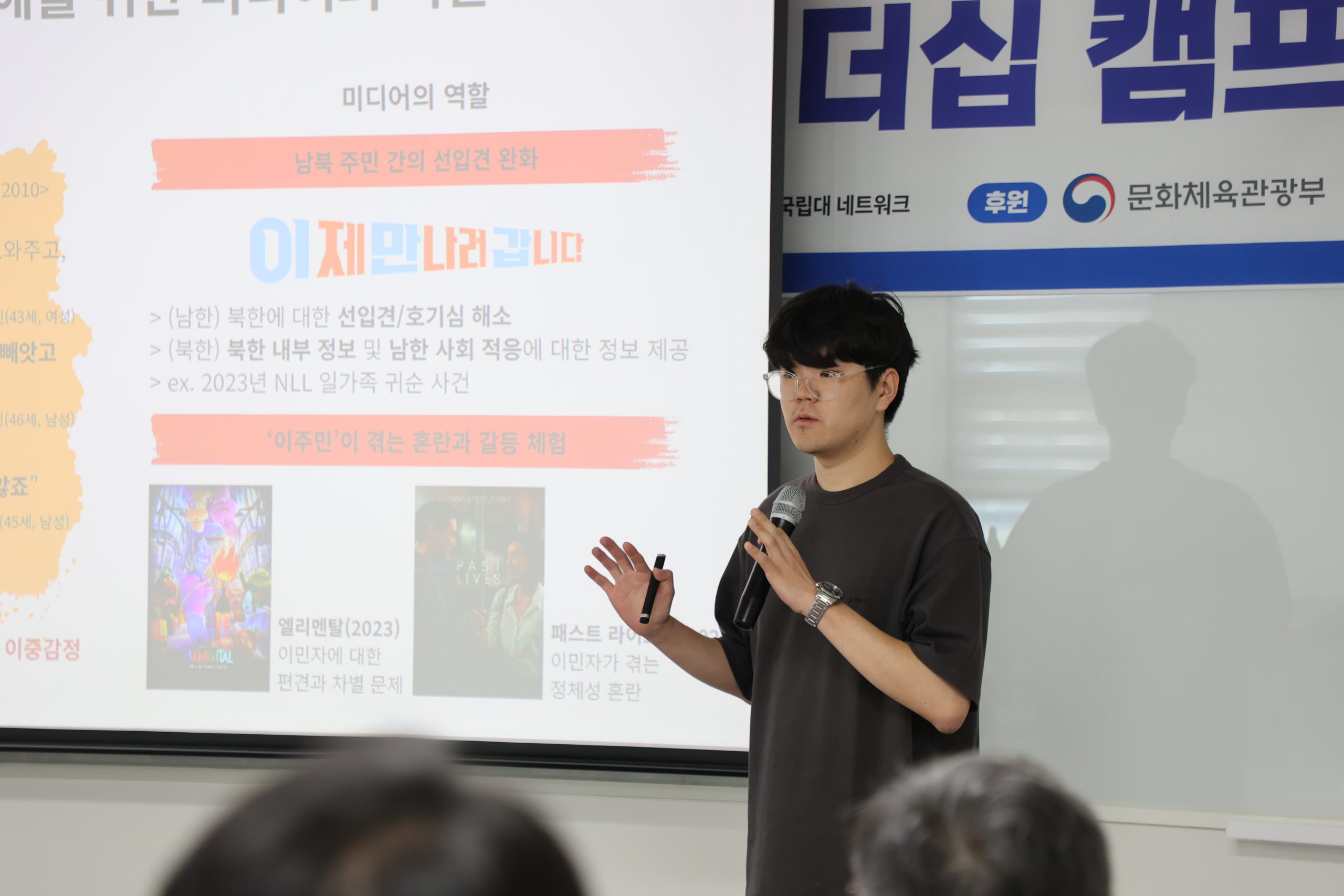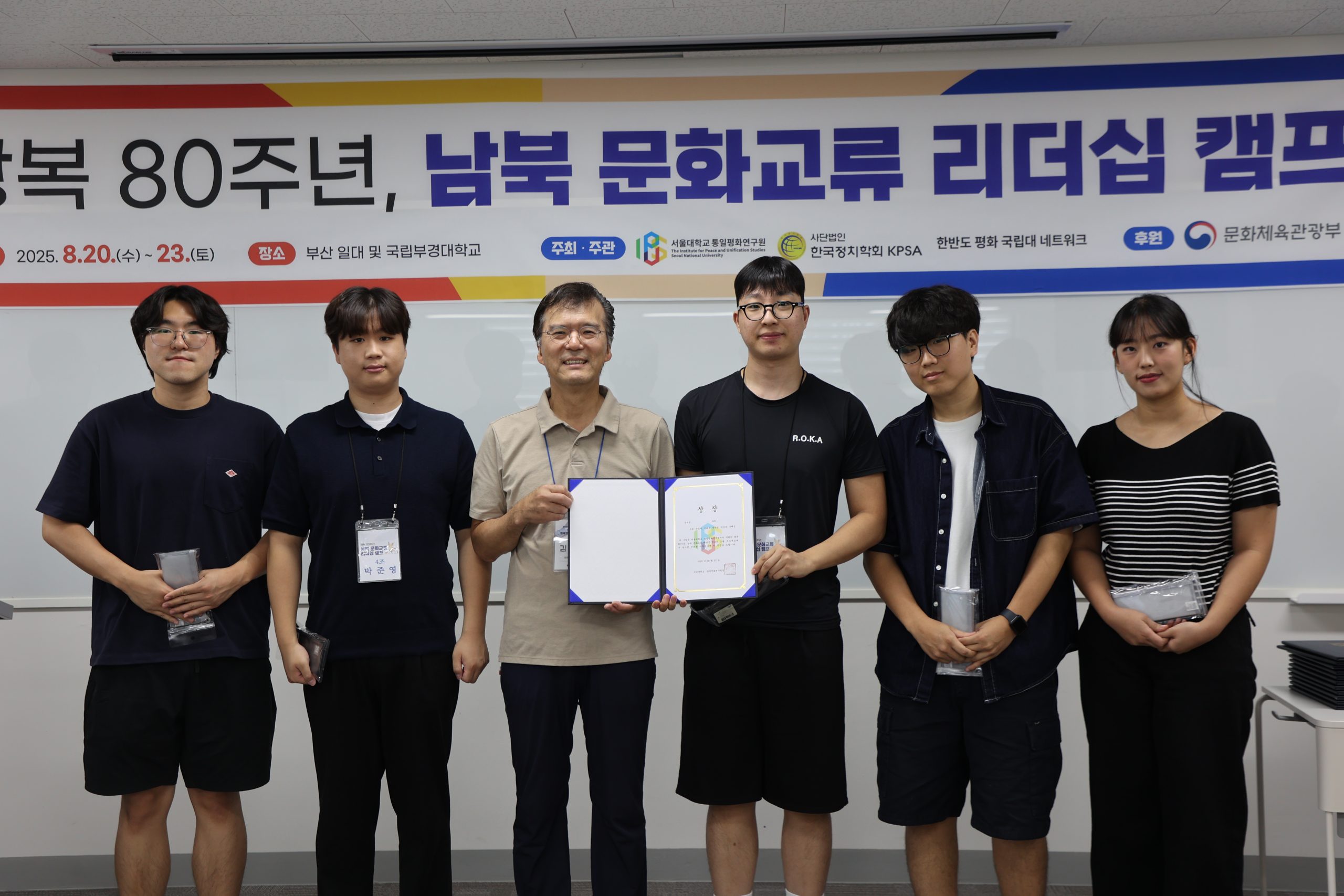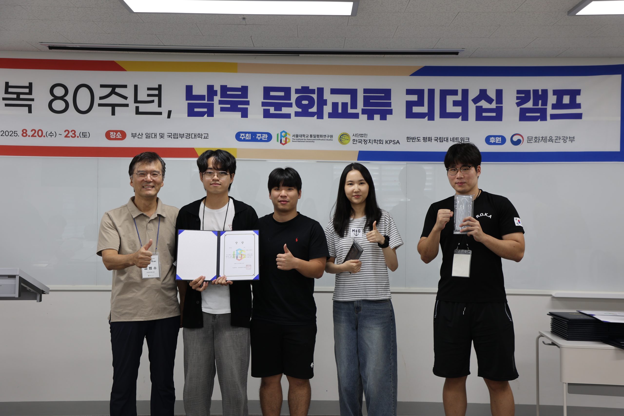 서울대학교 통일평화연구원과 한국정치학회, 한반도 평화 국립대 네트워크에서 공동주최하고, 문화체육관광부에서 후원한 이번 ‘남북 문화교류 리더십 캠프’는 대학 학부생을 대상으로 남북 문화교류 관련 교육 효과를 제고하기 위한 목적으로 8월 20일(수)부터 23일(토)까지 3박4일 동안 국립부경대학교에서 진행하였다. 서울대를 포함하여 국립강릉원주대, 전남대, 부산대 등 다양한 지역에서 참가한 총 30여명의 학생들은 이번 프로그램에서 3개의 남북 문화교류 관련 교육세미나를 수강하고, 광복 80주년을 맞이해 분단된 한반도를 돌아볼 수 있는 현장 교육 답사 등을 수행하면서 남북 문화교류의 과거와 현재를 진단하고 미래를 탐구할 수 있는 뜻깊은 시간을 가지게 되었다.