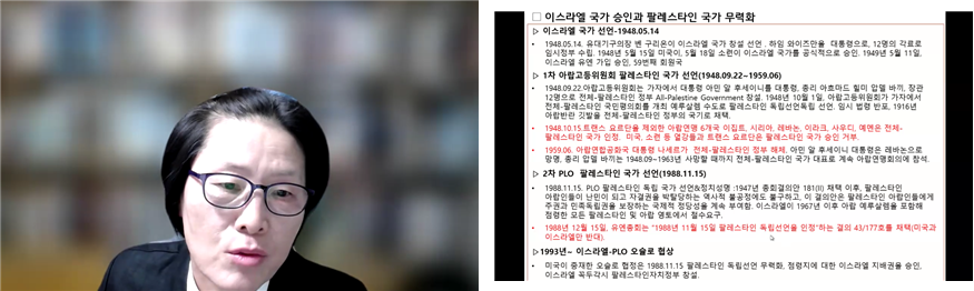 - 2강 – 이스라엘·팔레스타인의 두 국가 해법과 중동평화(홍미정 단국대 아시아중동학부 교수)