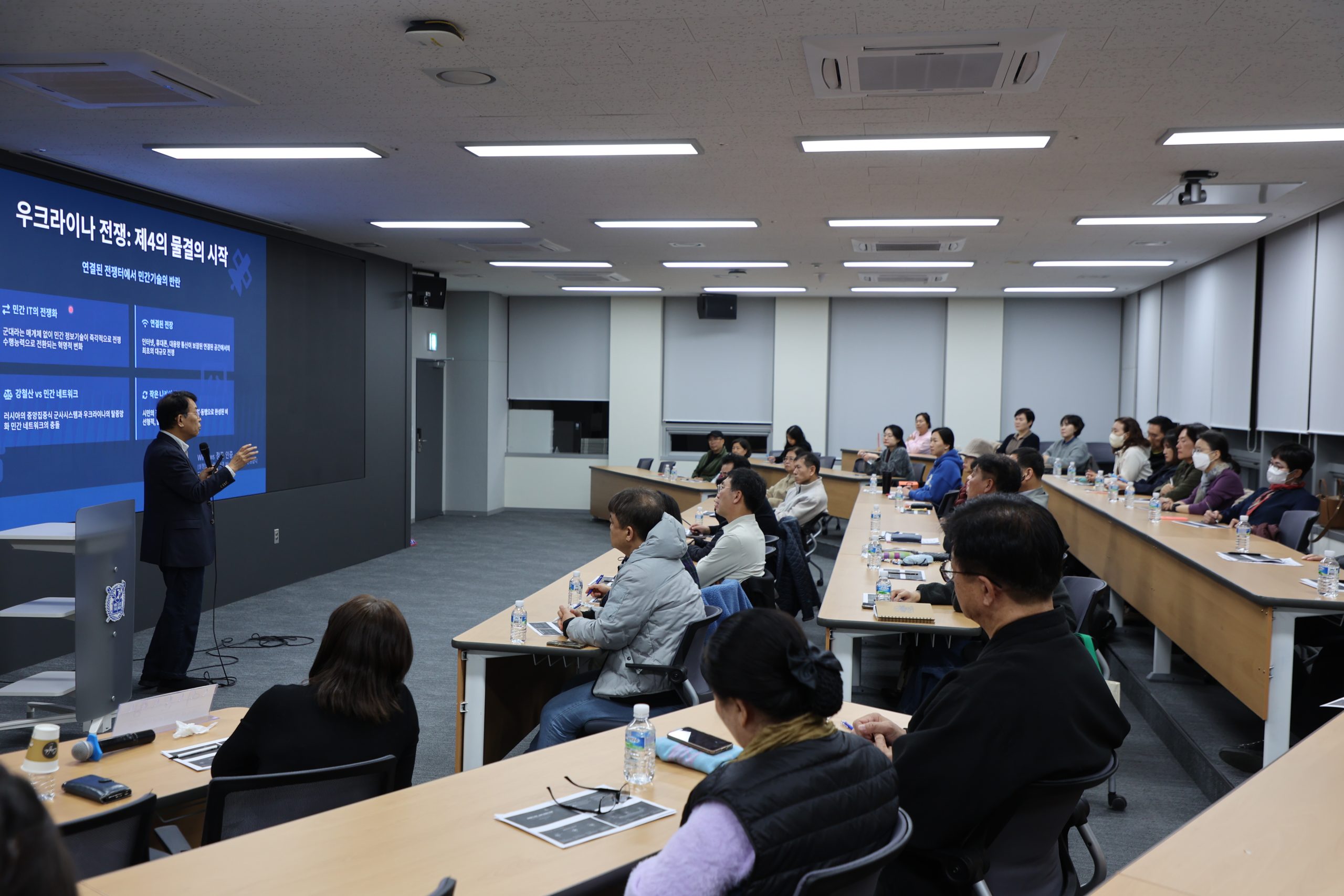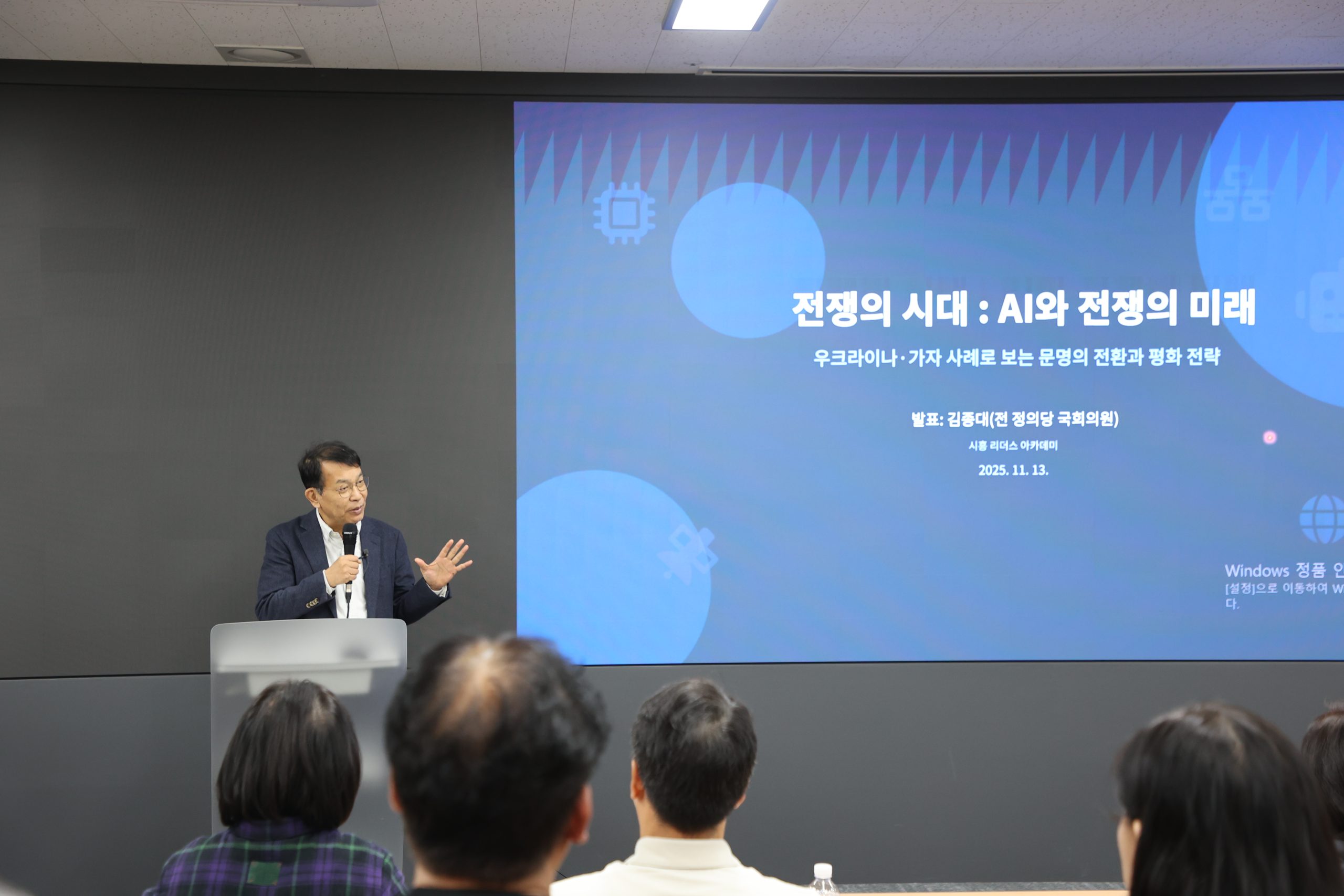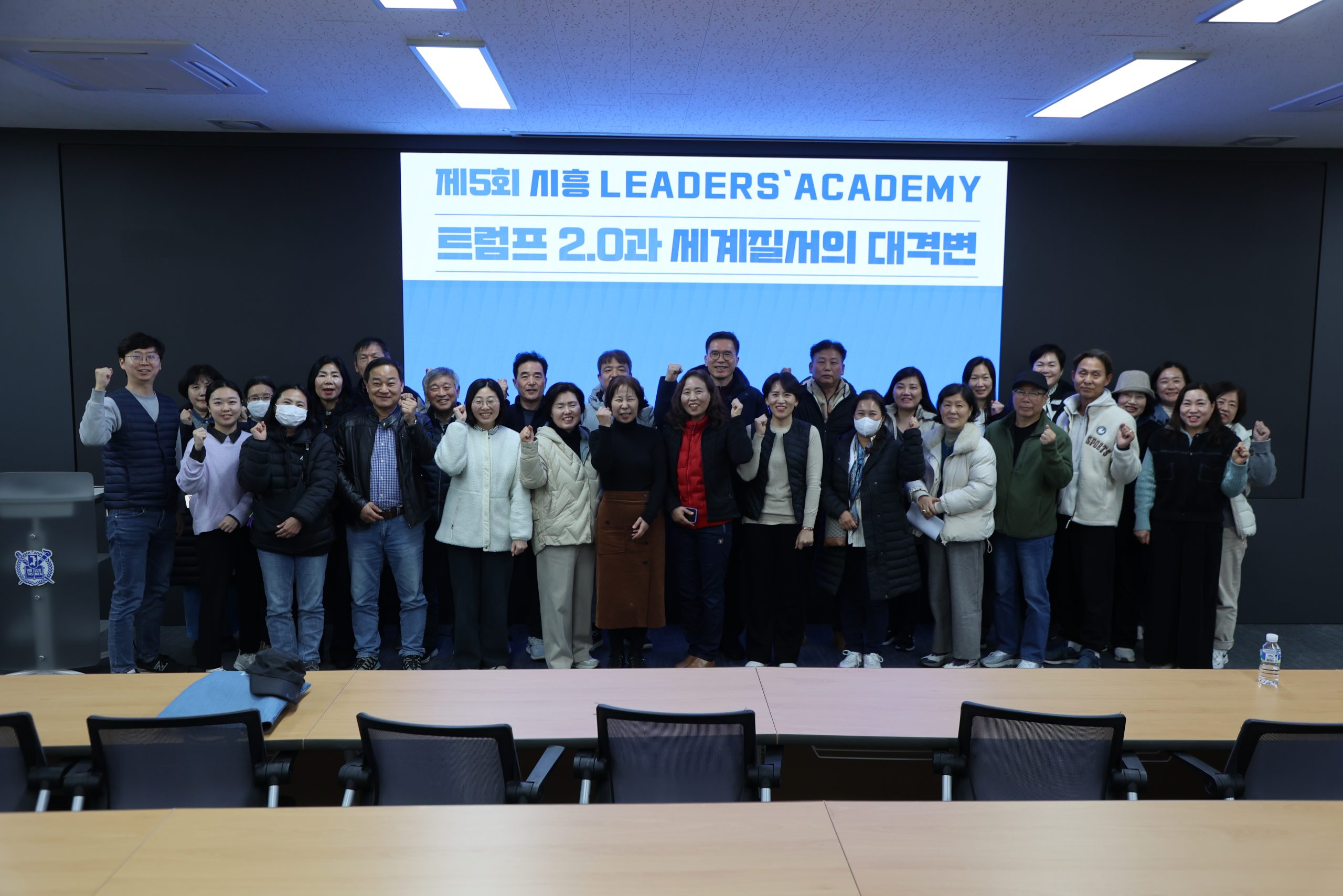 2025년 10월-11월에는 “트럼프 2.0과 세계질서의 대격변”이라는 주제 아래 제5회 <시흥 리더스 아카데미>가 진행되었다. 총 74명의 시흥시민이 참가를 신청했고, 트럼프 이후 미국과 유럽의 변화, 이란-이스라엘 분쟁, 일본의 새 내각 출범과 중국 경제 문제 등 동아시아 질서 변화, 우크라이나 전쟁의 전망, AI가 열어젖힌 새로운 전쟁기술 등을 주제로 서울대의 전재성 교수, 김현철 교수, 세종대의 최필수 교수, 서강대 박현도 교수, 조선일보 손진석 기자, 김종대 전 국회의원 등 각 분야 국내 최고전문가의 강연이 진행되었다.