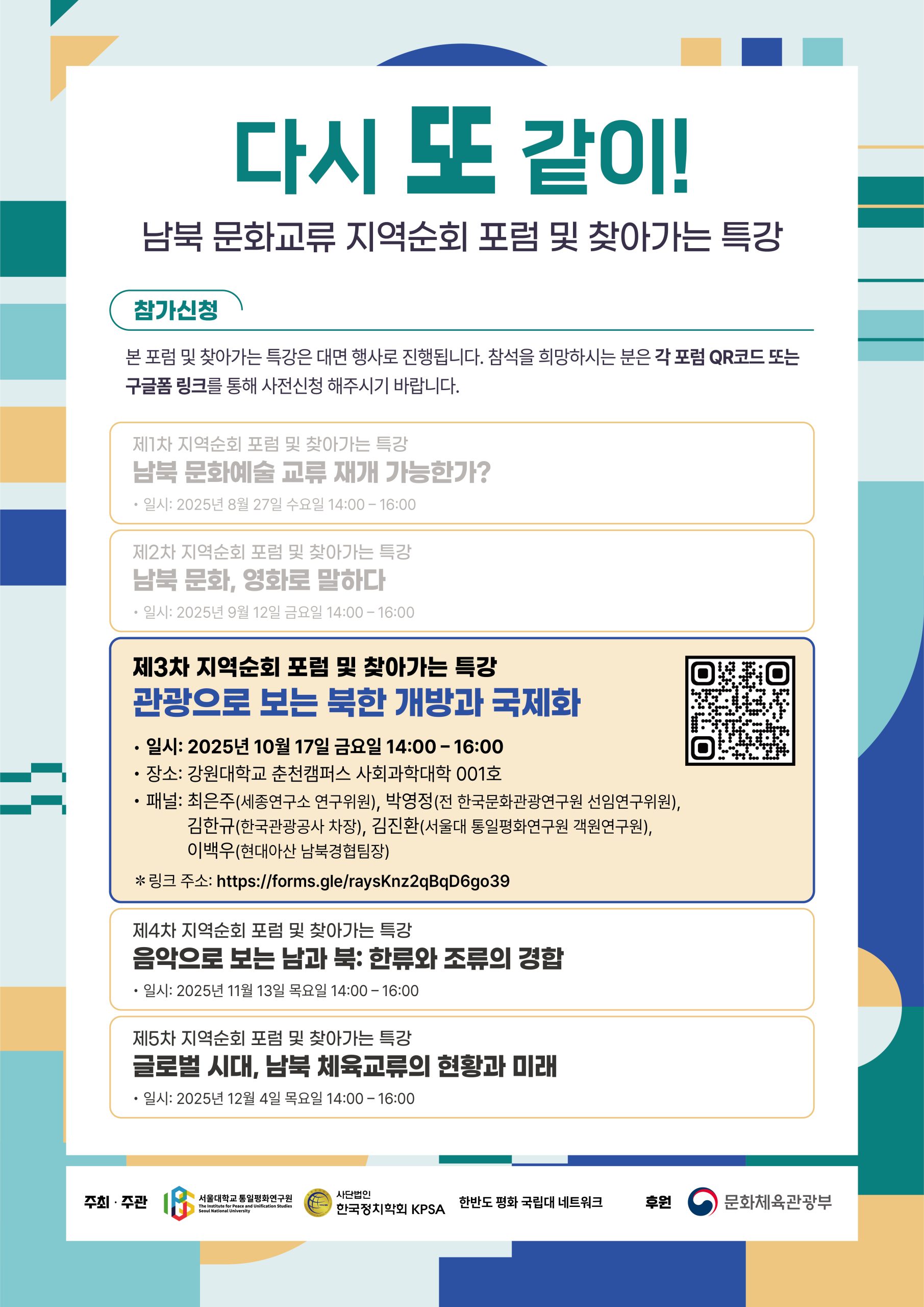 [2025 남북 문화교류 교육 프로그램] ‘다시 또 같이!’ 남북 문화교류 지역순회 포럼 및 찾아가는 특강 Ⅲ