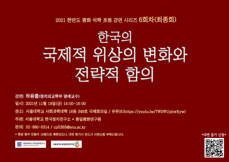 한국정치연구소가 <2021 한반도 평화 석학 초청 강연 시리즈> 최종회를 엽니다.