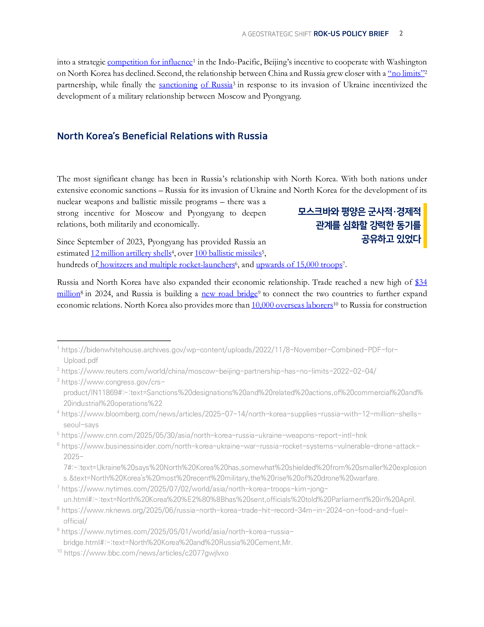 ROK-US POLICY BRIEF (2025-SEP. ISSUE13) “A Geostrategic Shift: Trilateral Convergence of China, Russia, and North Korea on the Korean Peninsula” By Troy Stangarone