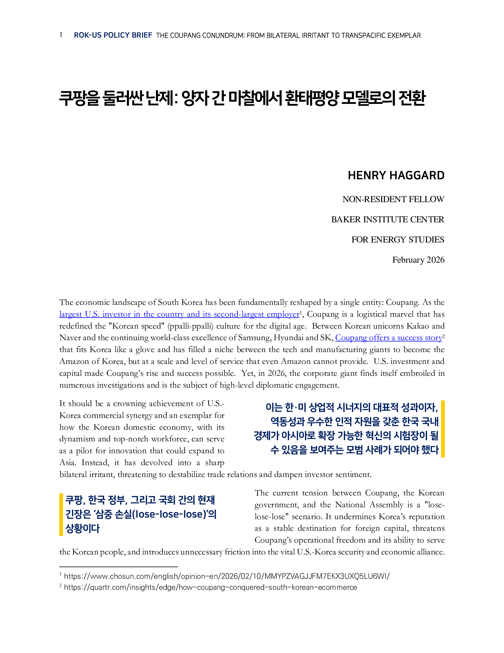 ROK-US POLICY BRIEF (2026-FEB. ISSUE18) “The Coupang Conundrum: From Bilateral Irritant to Transpacific Exemplar” By Henry Haggard
